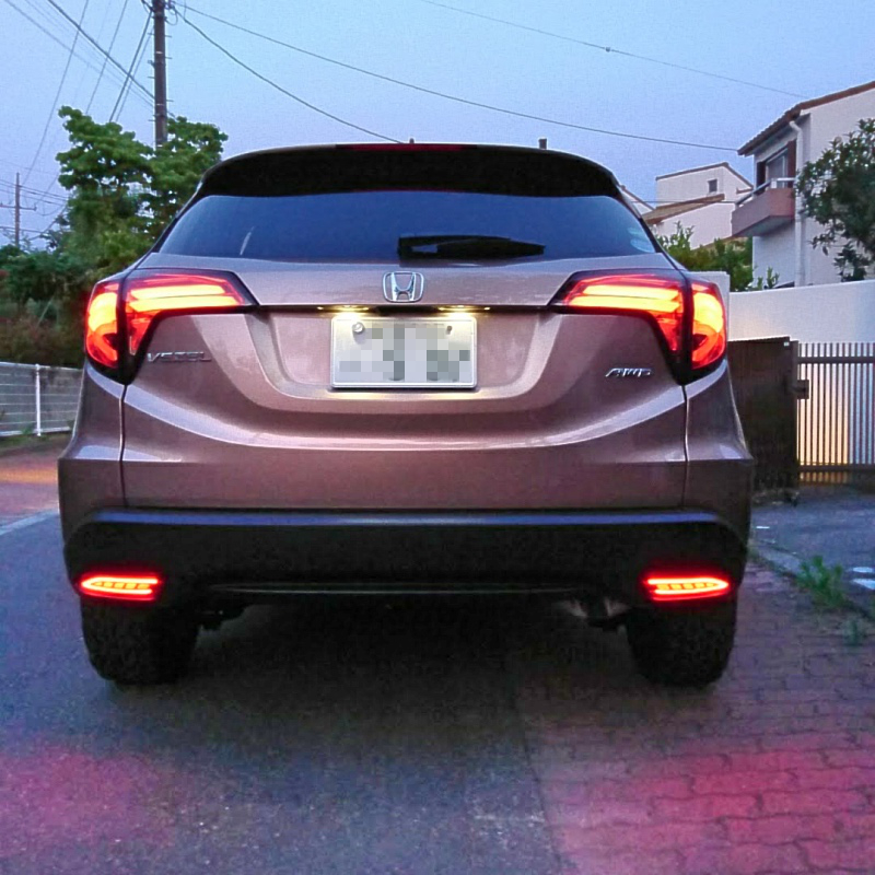 フォレのように威圧感がまるで出ないんだが、それでも他車と区別できるようにリア周りの変更。ヴェゼルはゲート側のテールレンズってリバースライト以外はただのリフレクターでまったく光らないんだよな。なので社外のテールレンズに交換